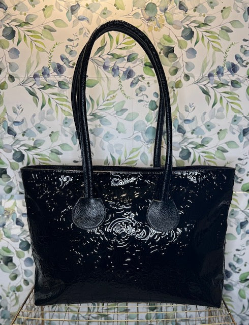 Introducing The Patent Laptop Bag, the ultimate fusion of style and functionality. Crafted from luxurious embossed Mexican patent leather, this bag is not just a fashion statement; it’s designed to protect and carry your laptop and essentials with ease. With a sleek zipper closure and a sophisticated look, this bag is perfect for both professional settings and casual outings.
